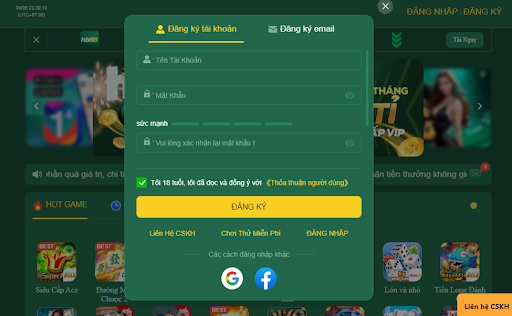 Sau đó, bet thủ nhìn thấy ở góc phải phía trên màn hình có dòng lệnh “Đăng Ký”. Chỉ cần click vào đó là chúng ta đã hoàn thành bước đầu tiên.