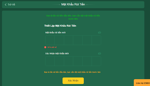 Tại Hb88, để đảm bảo an toàn cho tài khoản, nhà cái yêu cầu anh em thiết lập mật khẩu rút tiền. Đây là bảng thông báo dành cho những hội viên lần đầu tiên giao dịch. Từ những lần thực hiện sau, bạn không cần điền nữa. Mật khẩu rút tiền cần 6 chữ số, tránh những số quá giống nhau hoặc dễ đoán như liên tục, liên quan đến ngày sinh,…
