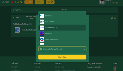 - Chọn phương thức rút tiền phù hợp với bản thân như chuyển khoản ngân hàng, ví điện tử, thẻ cào hoặc tiền mặt. Nên ưu tiên hình thức ngân hàng về tài khoản chính chủ đã đăng ký trước đó.